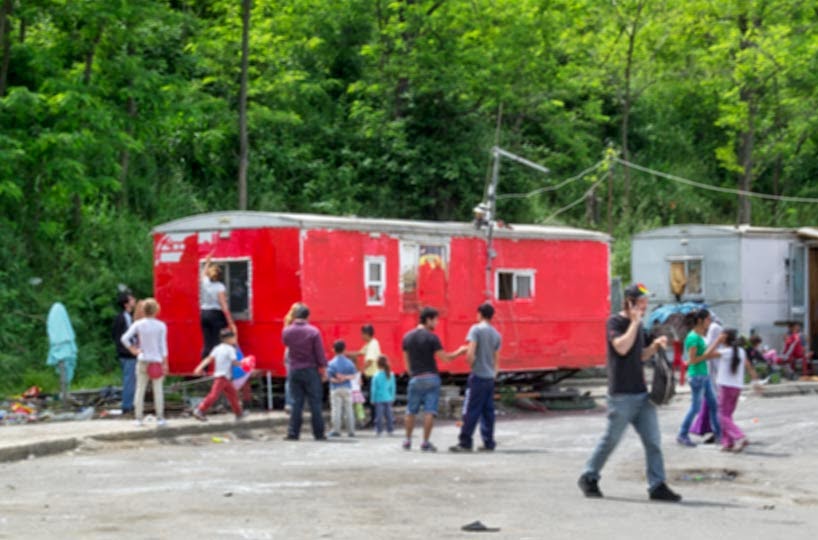 During a May sunny day, bring together: red paint, kids, a white container house...